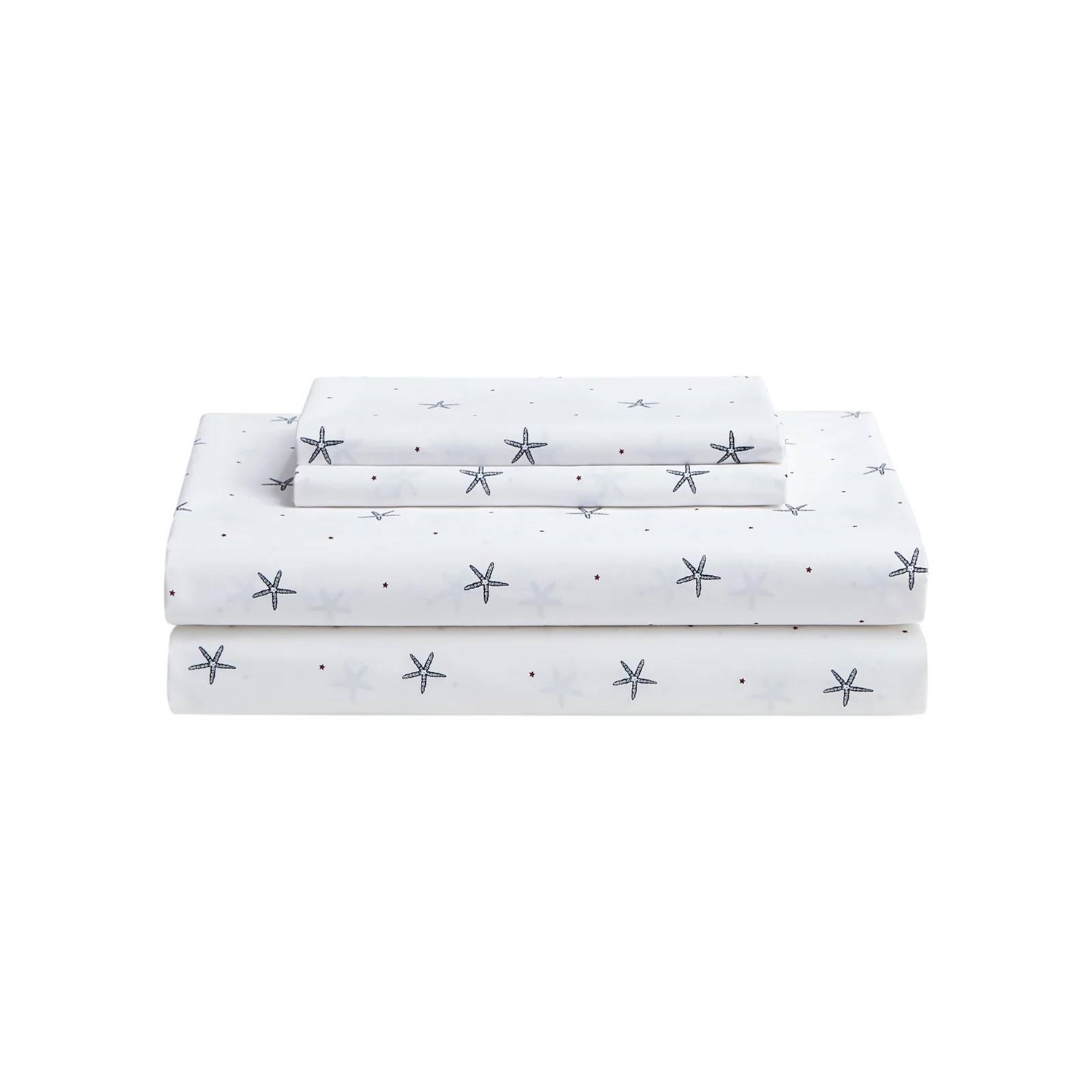Twin size Coastal Beach Starfish White Navy Red 100-Percent Cotton Sheet Set