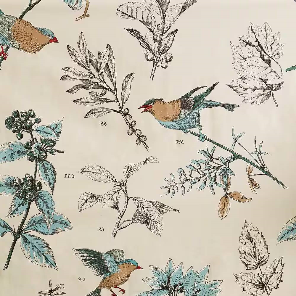 Home > 72-inch Beige Khaki Cotton Shower Curtain with Vintage Birds Leaf Floral Print