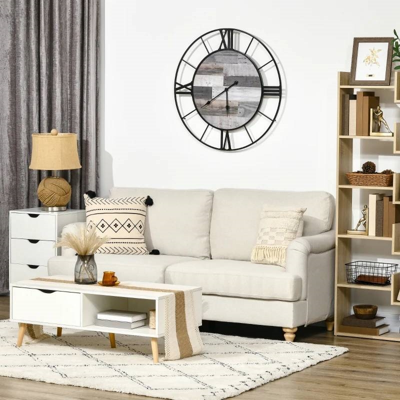 Home > Large 32-inch Roman Numeral Wall Clock Black Metal with Grey Wood Interior
