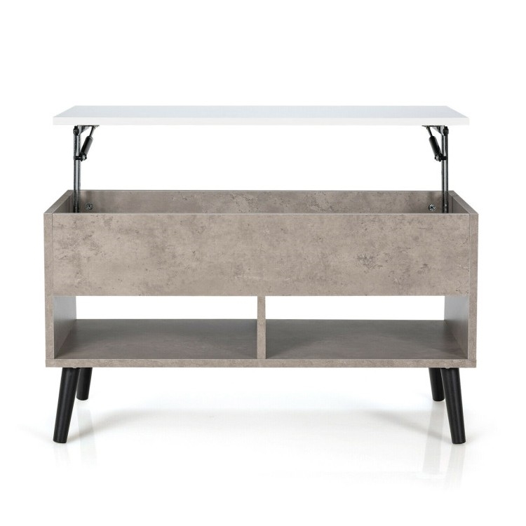 Home > Mid-Century Lift-Top Coffee Table Sofa Laptop Desk in Grey Wood White Top Finish