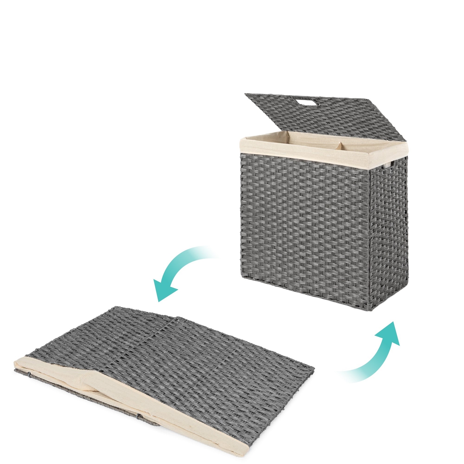 Folding 2-Bin Grey PE Wicker Linen Liner Laundry Hamper w/ Handles Folding 2-Bin Grey PE Wicker Linen Liner Laundry Hamper w/ Handles Folding 2-Bin Grey PE Wicker Linen Liner Laundry Hamper w/ Handles Folding 2-Bin Grey PE Wicker Linen Liner Laundry Hamper w/ Handles Folding 2-Bin Grey PE Wicker Linen Liner Laundry Hamper w/ Handles