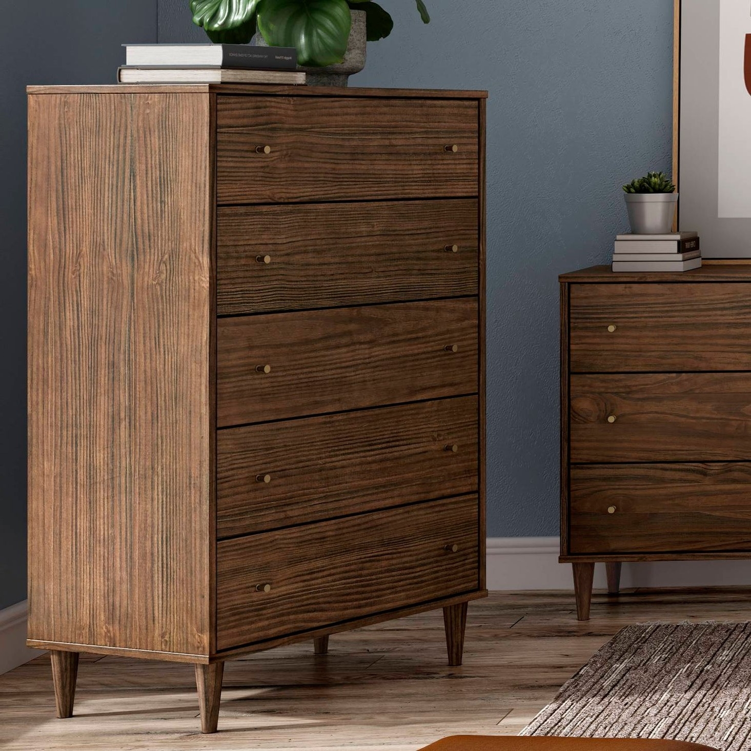 Home > Farmhouse Rustic Walnut Mid Century 5 Drawer Chest