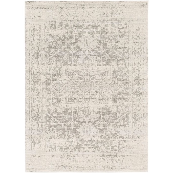 3' x 5' Distressed Oriental Area Rug in Light Grey / Beige