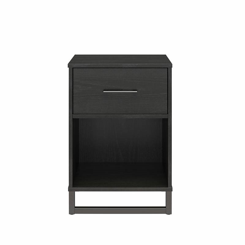 Home > Modern 1-Drawer Bedroom Nightstand in Rustic Black Wood Finish with Metal Legs