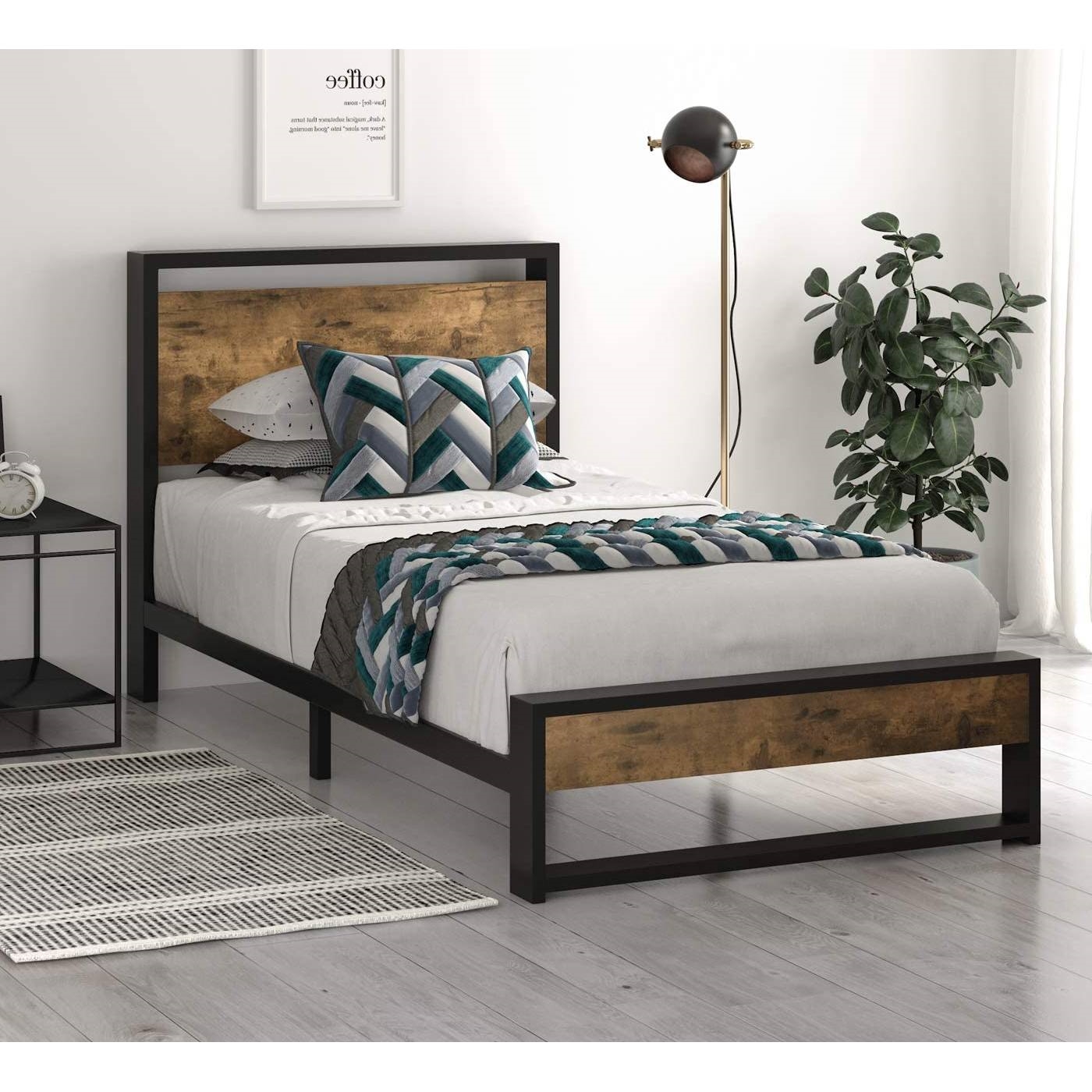 Twin size Metal Wood Platform Bed Frame with Industrial Headboard