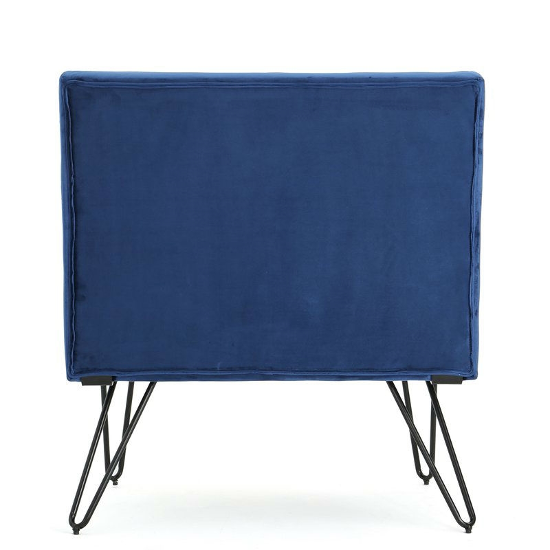Home > Navy Velvety Soft Upholstered Polyester Accent Chair Black Metal Legs