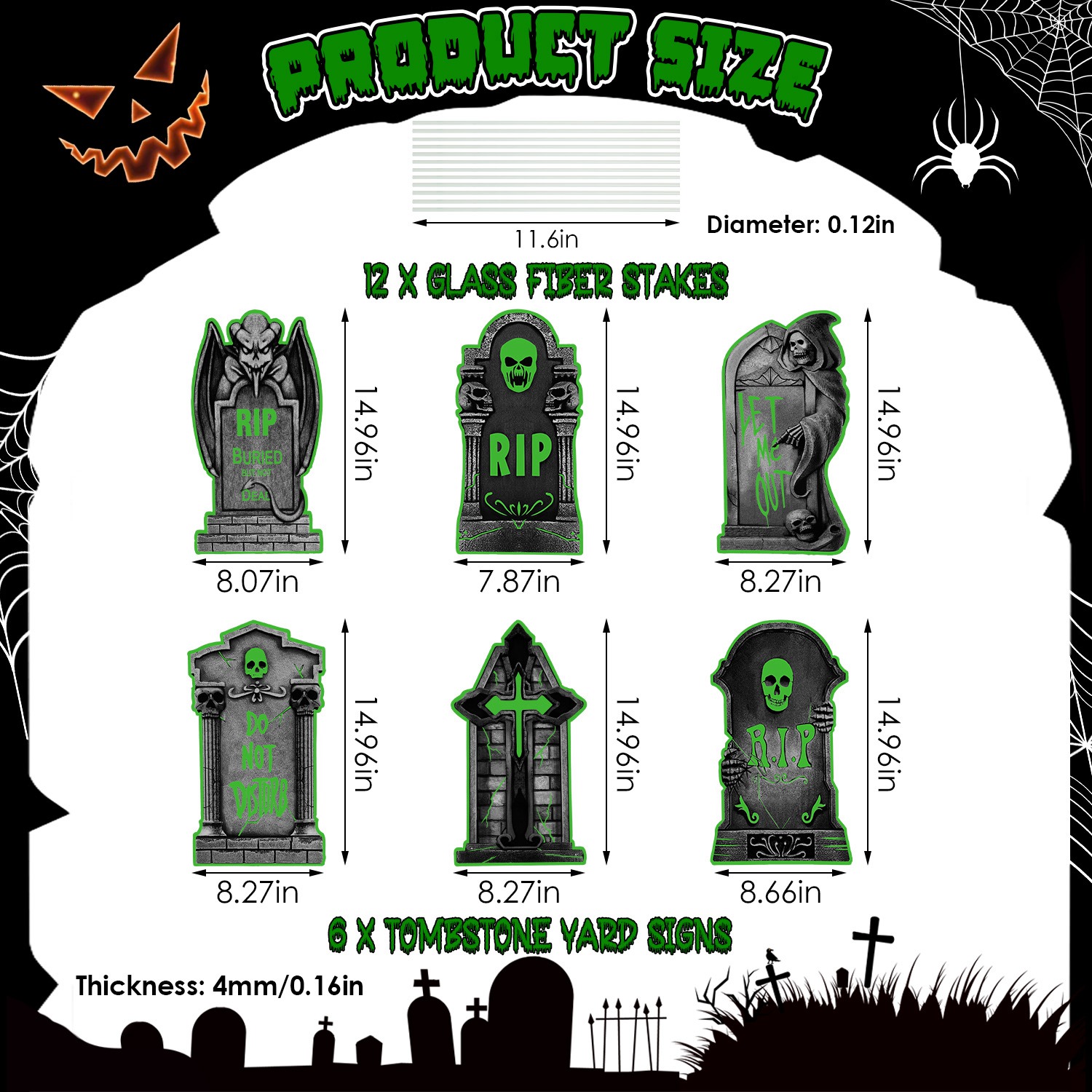 Halloween Tombstone Yard Sign Decorations 6Pcs Glow in the Dark Halloween RIP Tombstone Fluorescence Lawn Sign with 12 Stakes for Haunted House Garden