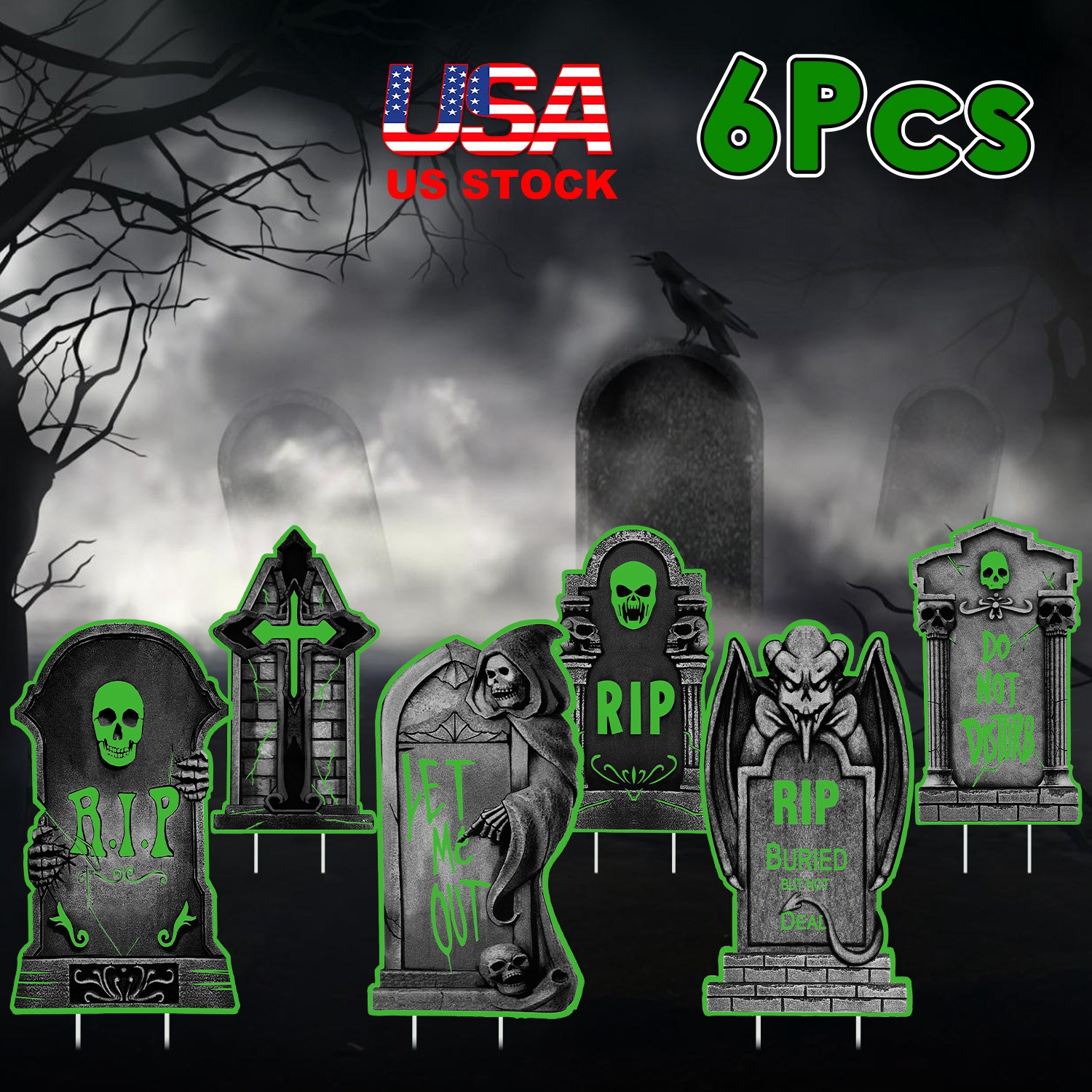 Home > Halloween Tombstone Yard Sign Decorations 6Pcs Glow in the Dark Halloween RIP Tombstone Fluorescence Lawn Sign with 12 Stakes for Haunted House Garden
