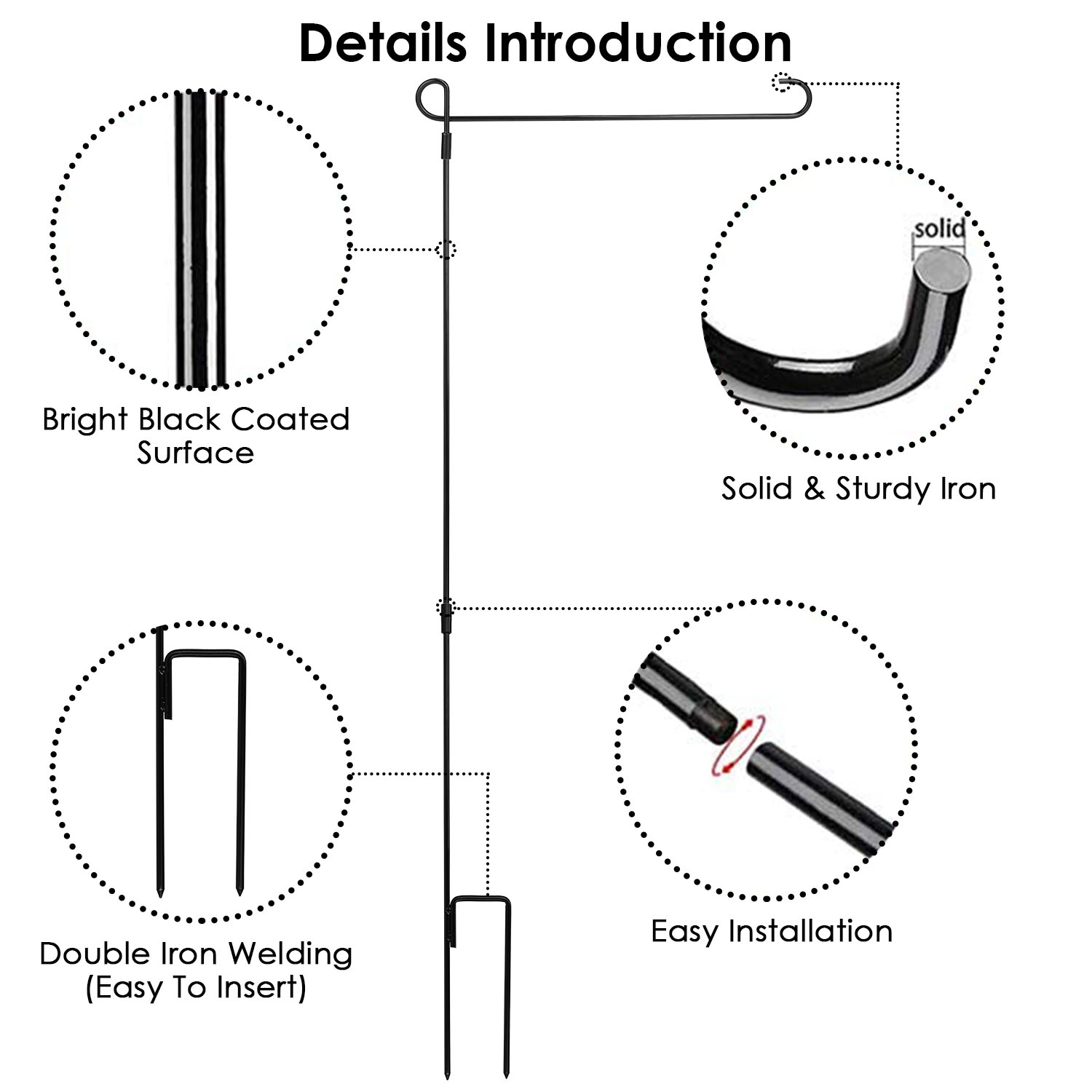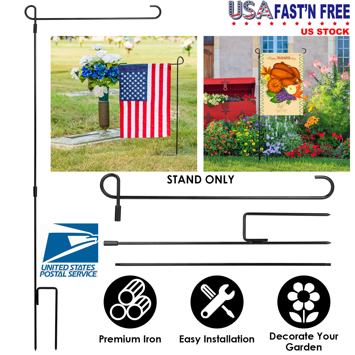 Home > Garden Flag Stand Flagpole Weatherproof Wrought Iron Coated Yard Flag Holder For Yard Flag Party Banner Fits 11.8x17.7in Flag