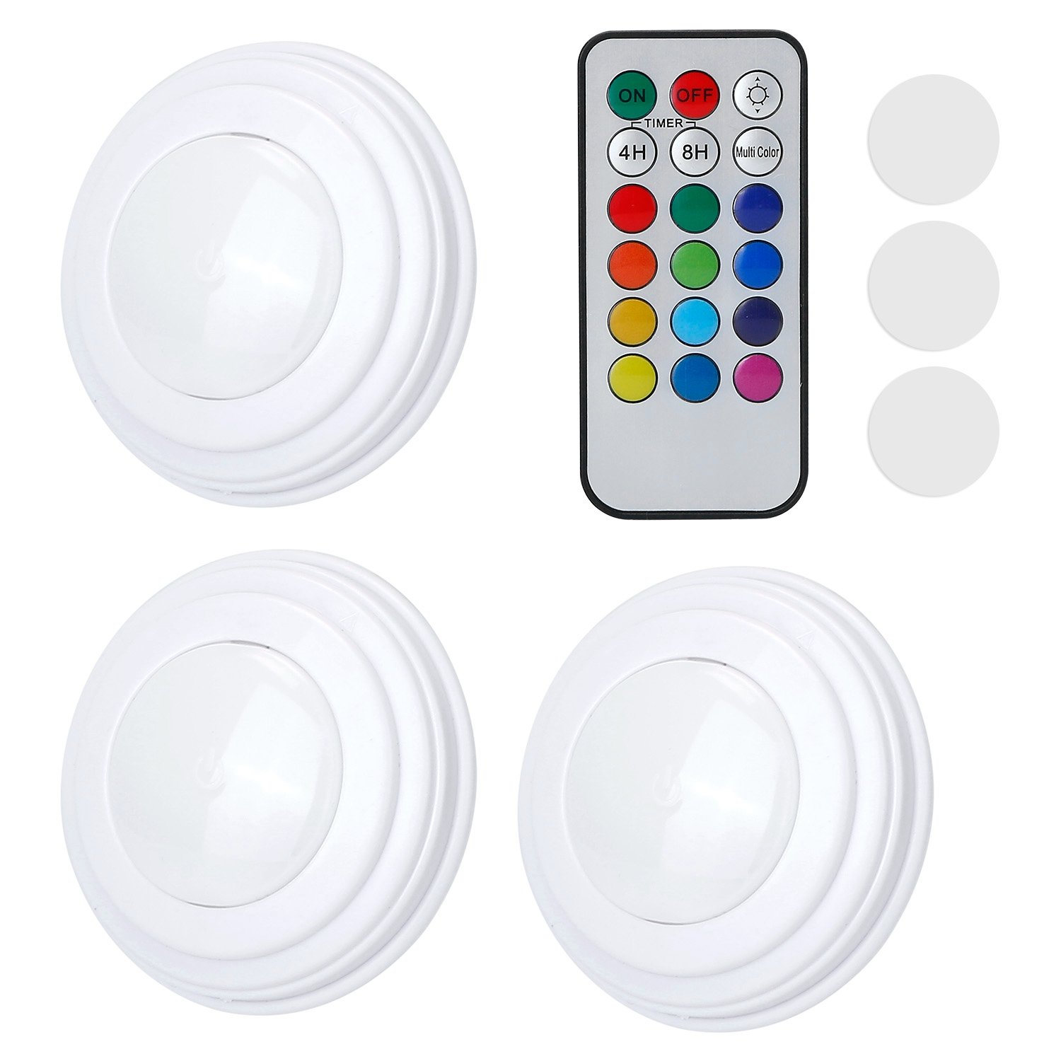 Home > 3Pcs RGB Cabinet Lights Remote Control Under Closet Stick On Lamp Multi Color LED Light Light w/ 4/8Hrs Timer