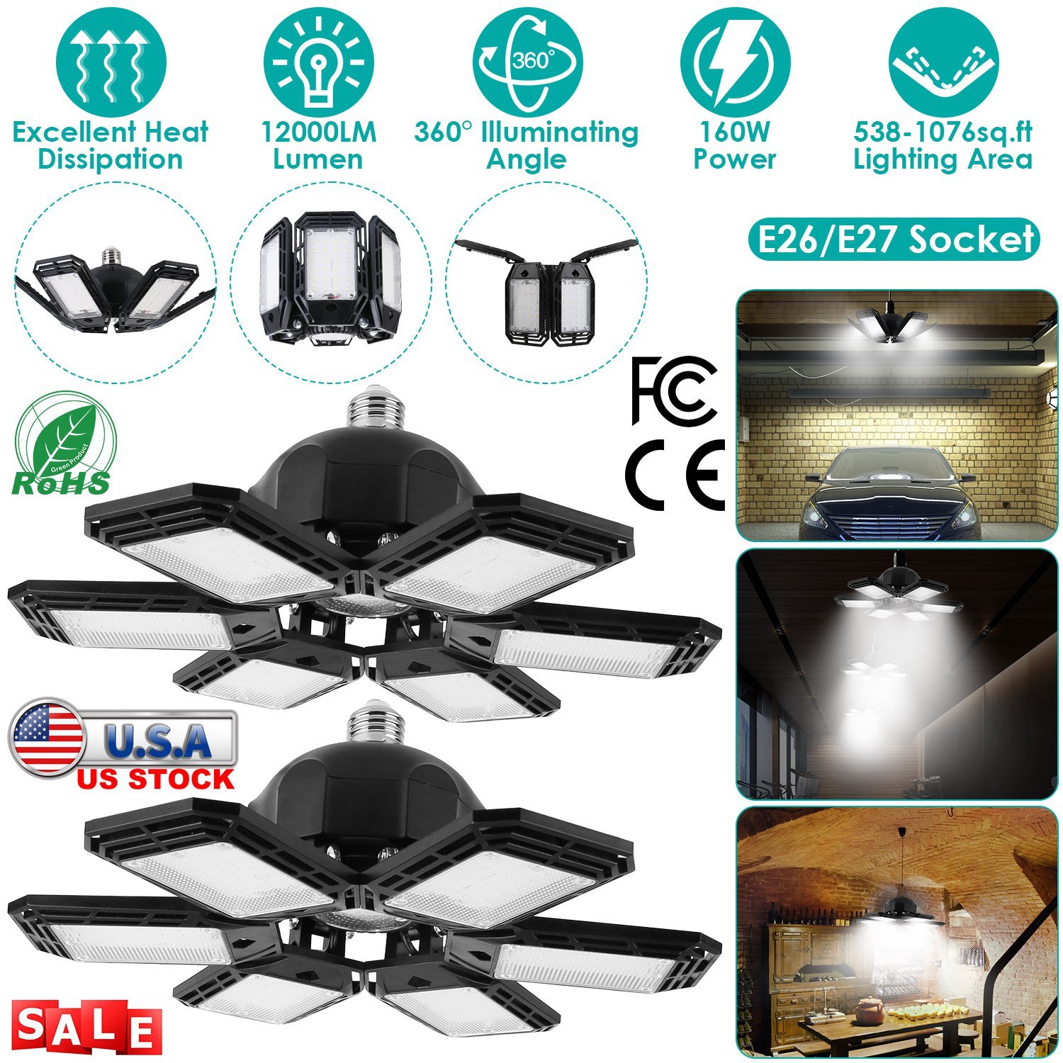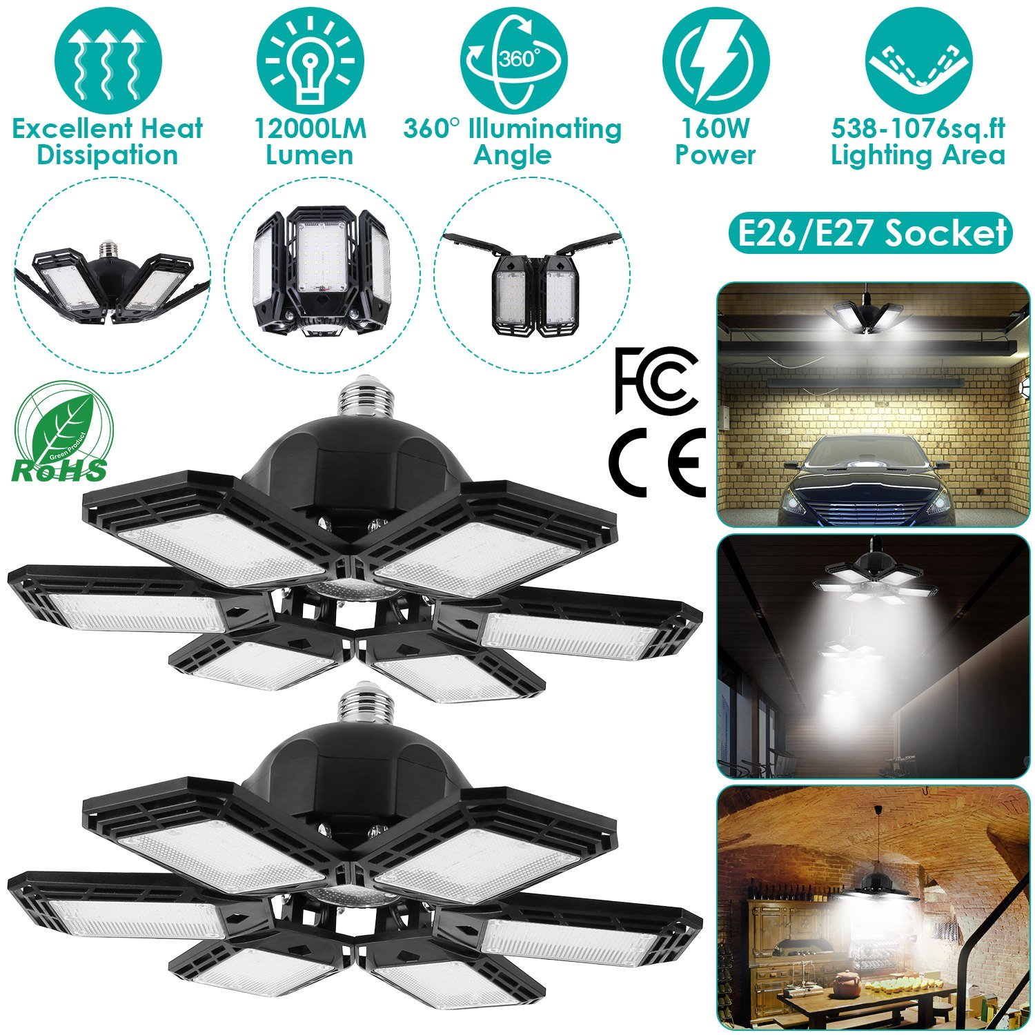 Home > 2 Packs LED Garage Lights 160W LED Shop Light Deformable E26/E27 Garage Ceiling Lights with 6 Adjustable Lighting Blades for Garage Basement Shop
