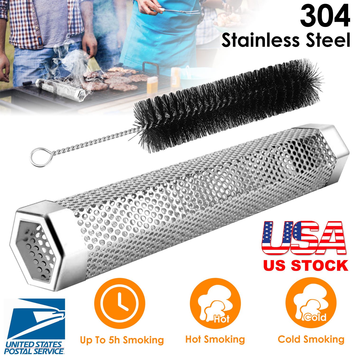 Our Pellet Smoker Tube is designed to work in any grill (gas, electric or charcoal), adding great flavor for your meat, fish, etc.. Adopting a new hexagonal shape, it will not fall or roll up easily. With 12in capacity and open cap in one side, it is easy to fill up enough pellets to provide constant smoke. Made from stainless steel, safe and durable. Extra cleaning brush makes it easy to clean the used Smoker Tube Pipe.