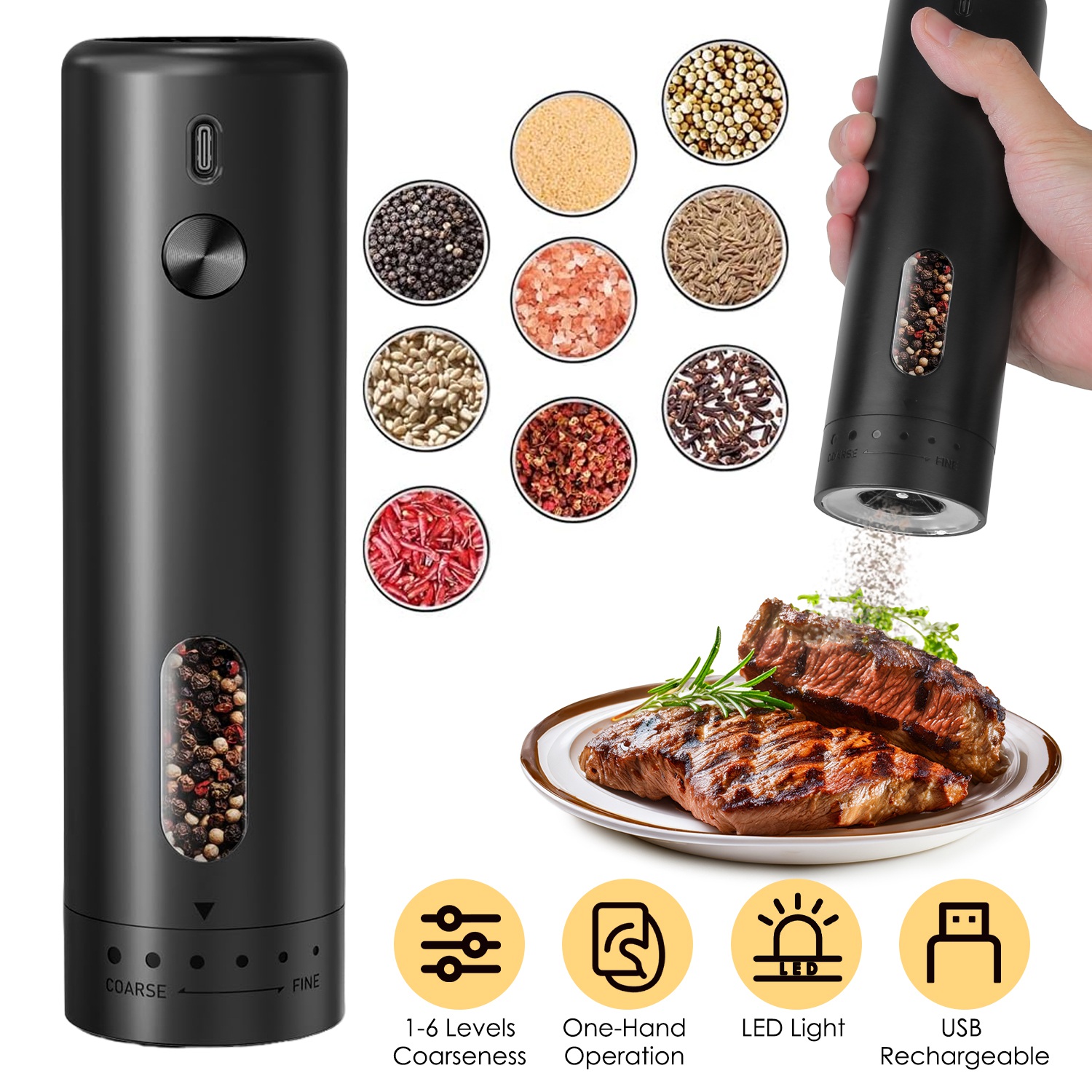 Electric Pepper Grinder USB Rechargeable Pepper Mill Automatic Salt Grinder with 6 Adjustable Coarseness LED Light 110ML/3.72OZ Container One Hand Ope Electric Pepper Grinder USB Rechargeable Pepper Mill Automatic Salt Grinder with 6 Adjustable Coarseness LED Light 110ML/3.72OZ Container One Hand Ope Electric Pepper Grinder USB Rechargeable Pepper Mill Automatic Salt Grinder with 6 Adjustable Coarseness LED Light 110ML/3.72OZ Container One Hand Ope Electric Pepper Grinder USB Rechargeable Pepper Mill Automatic Salt Grinder with 6 Adjustable Coarseness LED Light 110ML/3.72OZ Container One Hand Ope Electric Pepper Grinder USB Rechargeable Pepper Mill Automatic Salt Grinder with 6 Adjustable Coarseness LED Light 110ML/3.72OZ Container One Hand Ope