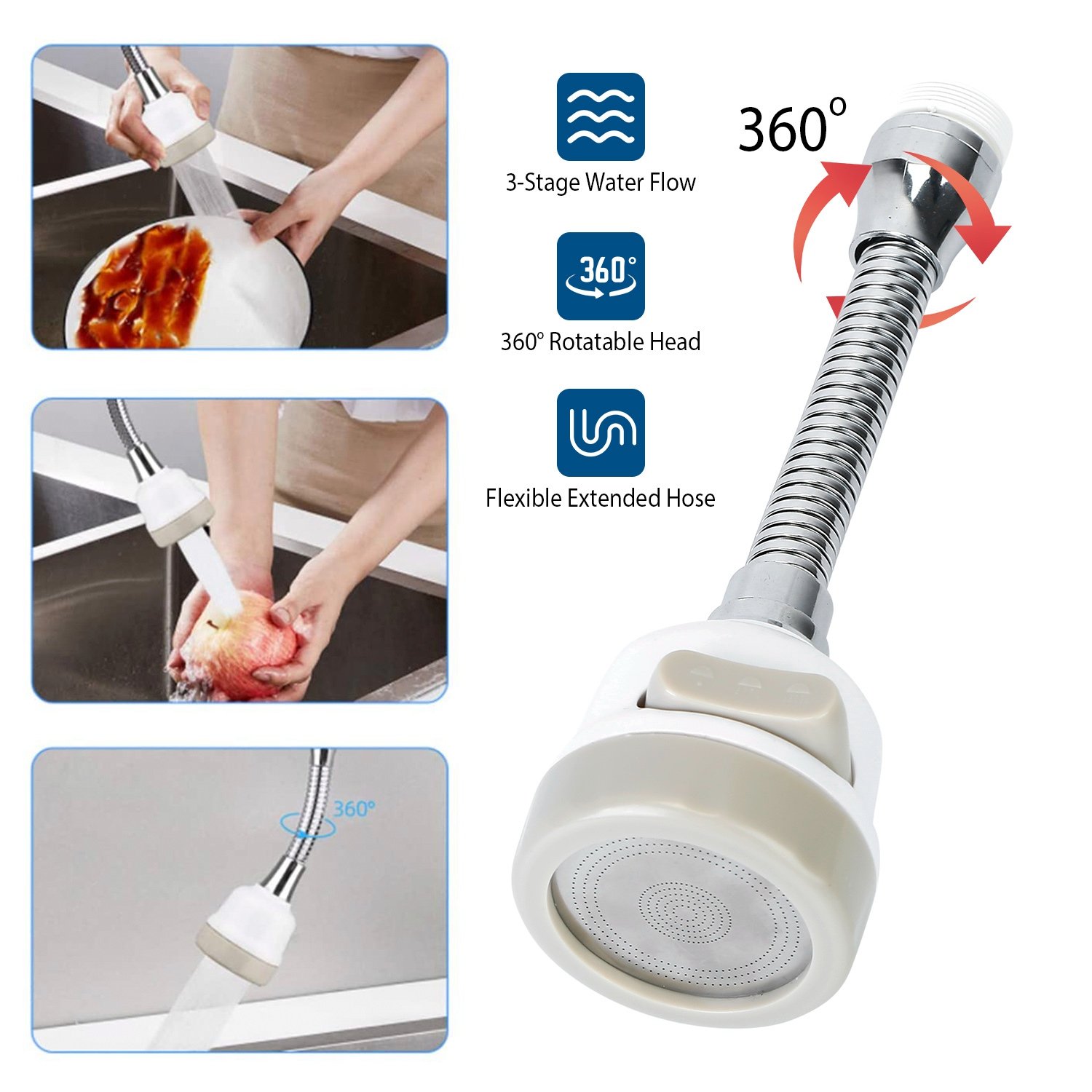 Home > Movable Kitchen Tap Head 360° Rotatable Swivel Water-Saving Faucet Anti-Splash Sink Tap Head Spray Aerator w/ Three Modes Flexible Extended Hose For H